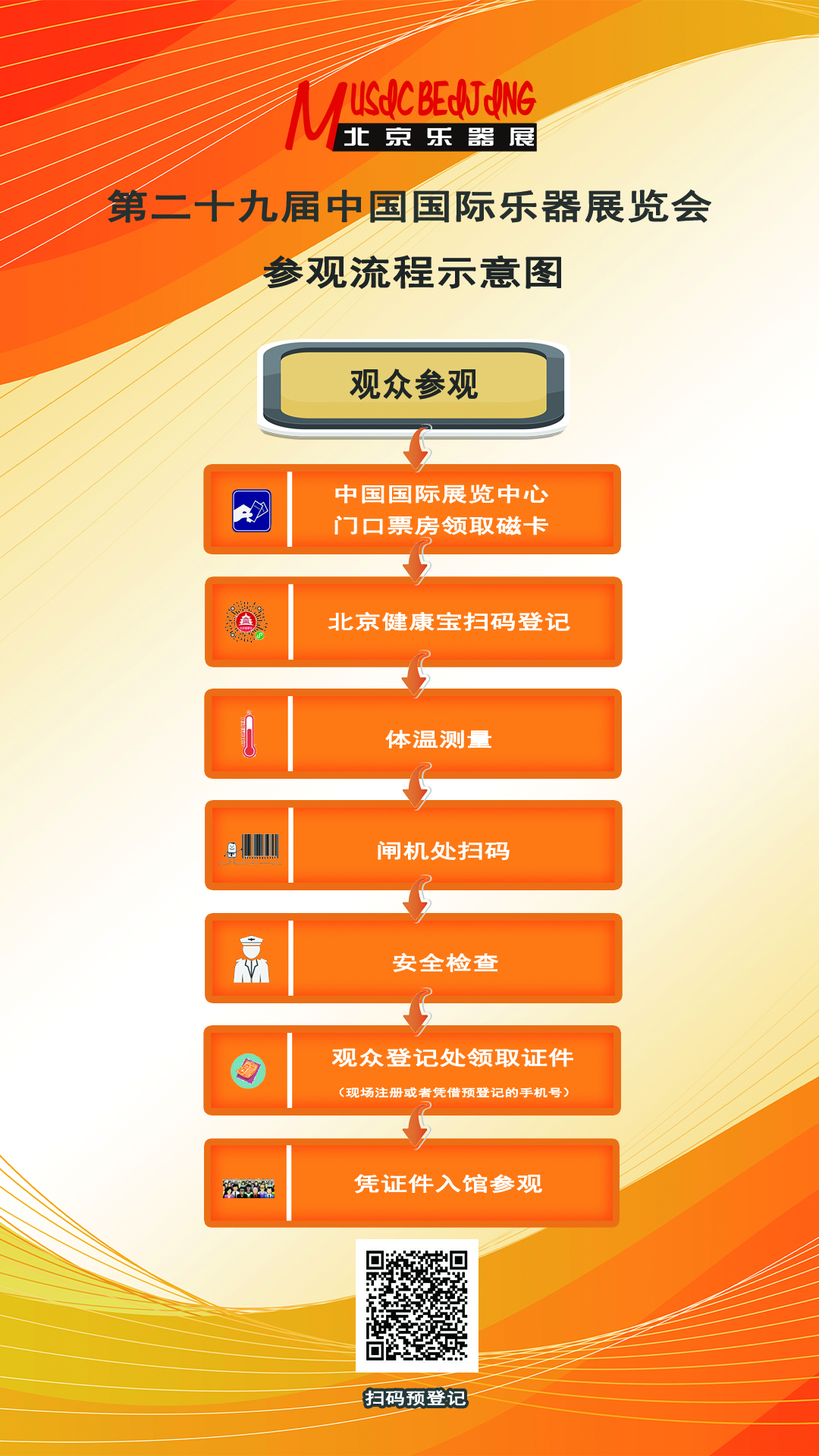 截止到發稿時間,目前對參觀參展人員沒有要求提供核算檢測報告以及疫苗接種證明的要求。但是會進行體溫檢測,以及掃描北京健康寶,行程碼為綠碼。參觀流程詳見下圖。